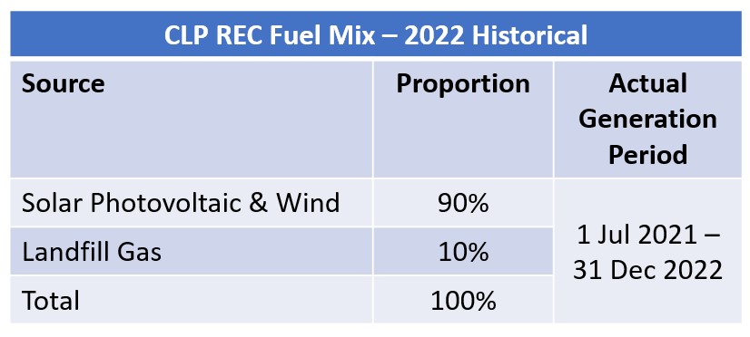 CLP customers are welcome to buy our Renewable Energy Certificates(REC) to support the local renewable energy generation. Each unit of electricity listed in a Renewable Energy Certificate represents the electricity produced by local renewable energy sources including solar power, wind power and landfill gas projects, generated or purchased (such as through Feed-in Tariff Scheme) by CLP.
