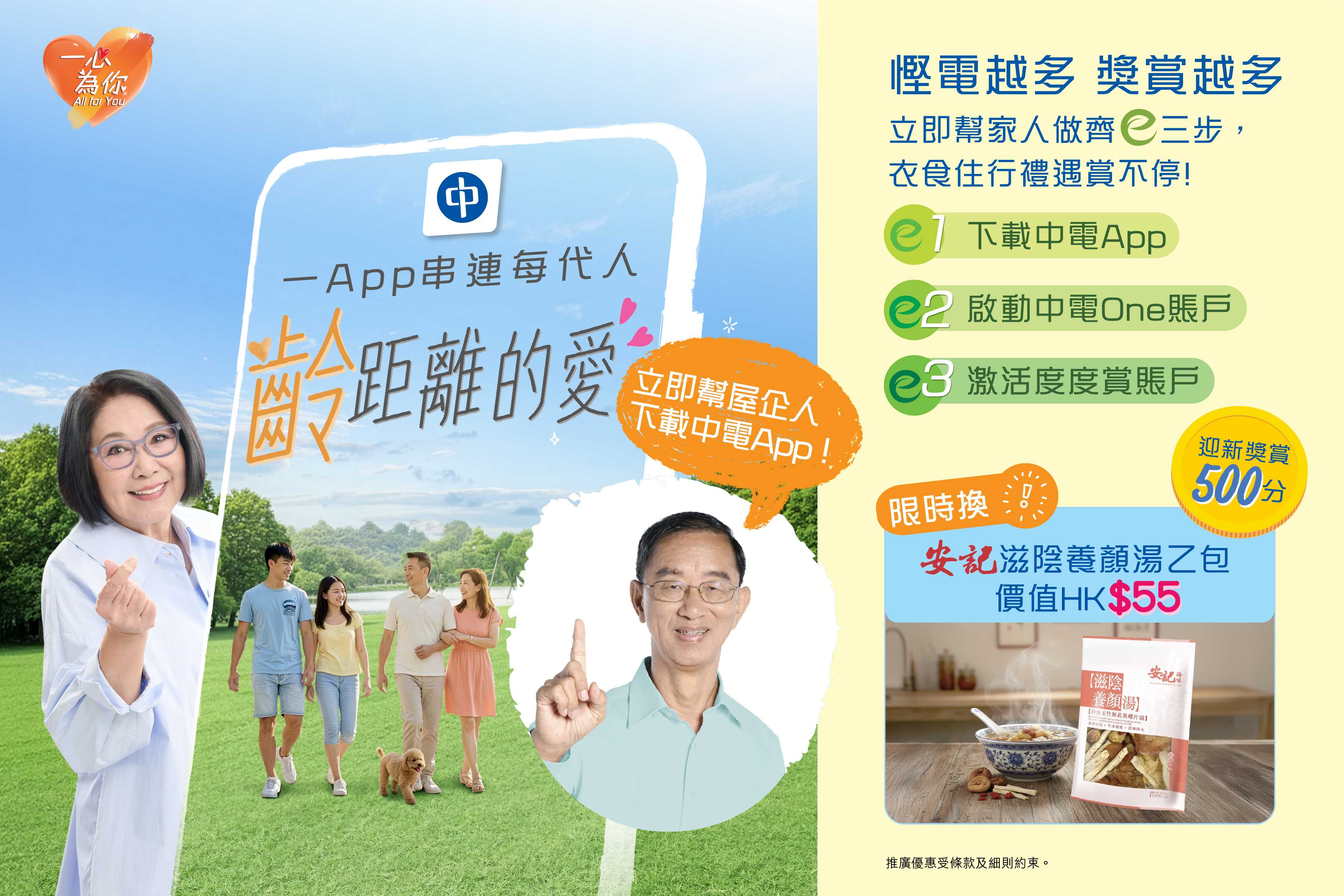 下載中電App及啟動中電One賬戶後,緊記激活度度賞賬戶以兌換精彩獎賞,更可參與社區共融體驗活動,為生活加Fun!