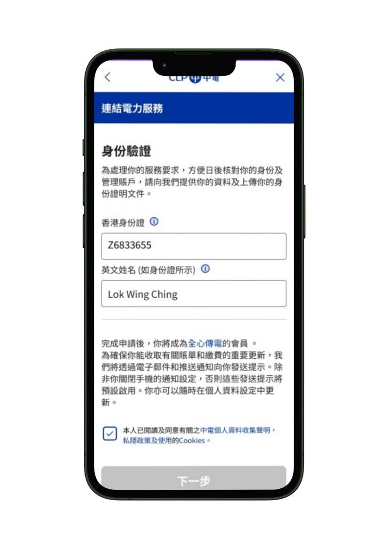 2️⃣ 啟動中電One賬戶